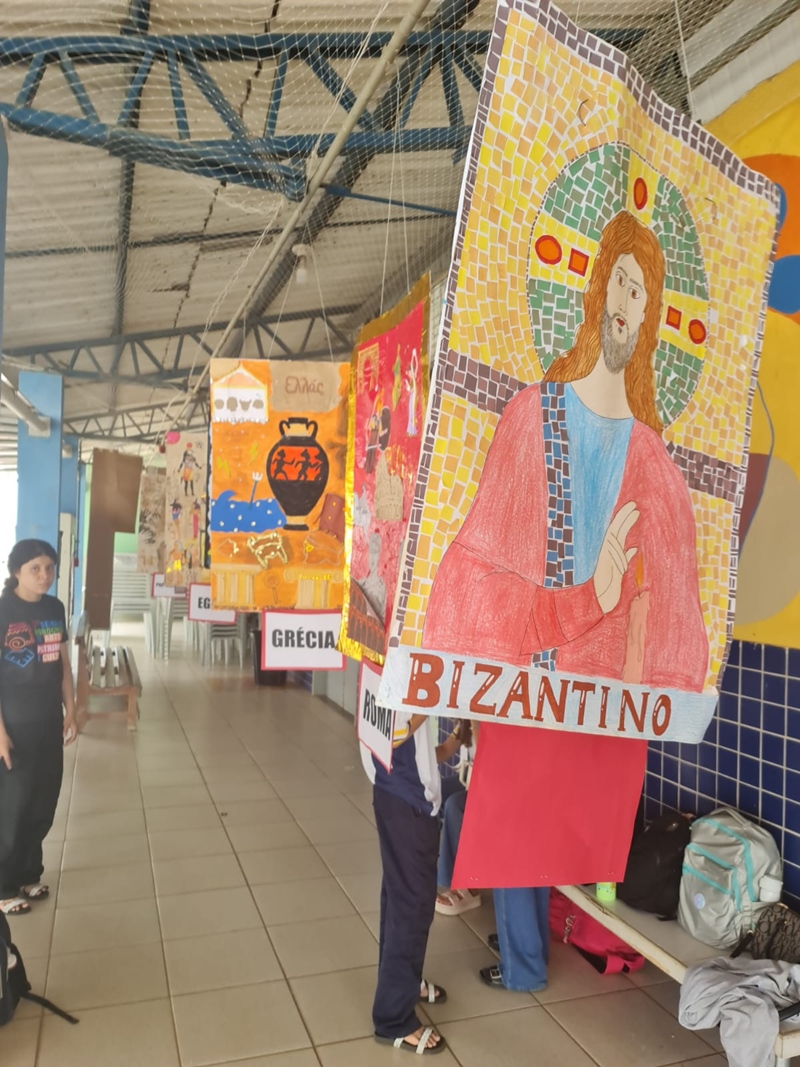 A Professora Telma Cristina Martins dos Santos, da disciplina de Artes, acompanhou o grupo e levou cerca de 200 trabalhos de História da Arte e painéis visuais desenvolvidos entre 2023 e 2024. As produções fazem parte do antigo clube de arte do campus e incluem projetos sobre consciência negra, biojoias, patrimônio histórico de Porto Velho e artes visuais dos Cursos Técnicos em Informática e em Edificações.