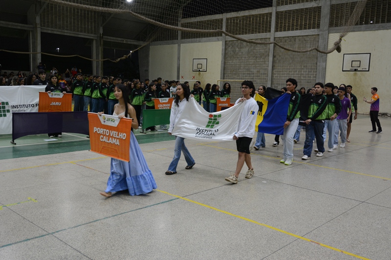 Na noite de segunda-feira (27/10), o Instituto Federal de Educação, Ciência e Tecnologia de Rondônia (IFRO) realizou a abertura oficial da 13ª edição dos Jogos Internos (JIFRO/2025), na quadra poliesportiva do Campus Porto Velho Calama. O evento reúne cerca de 700 atletas, representando dez delegações de campi de todo o estado, em uma grande celebração do esporte e da integração estudantil.
