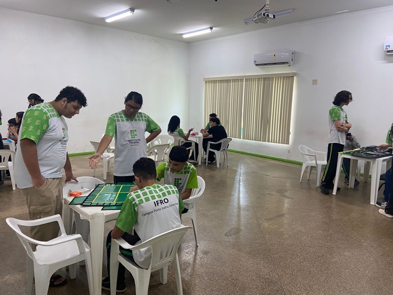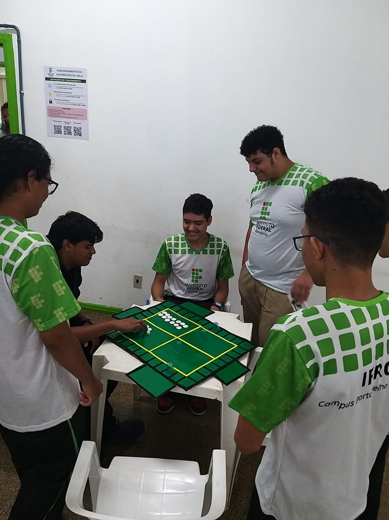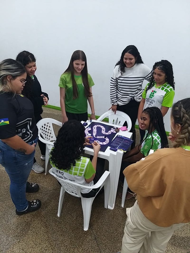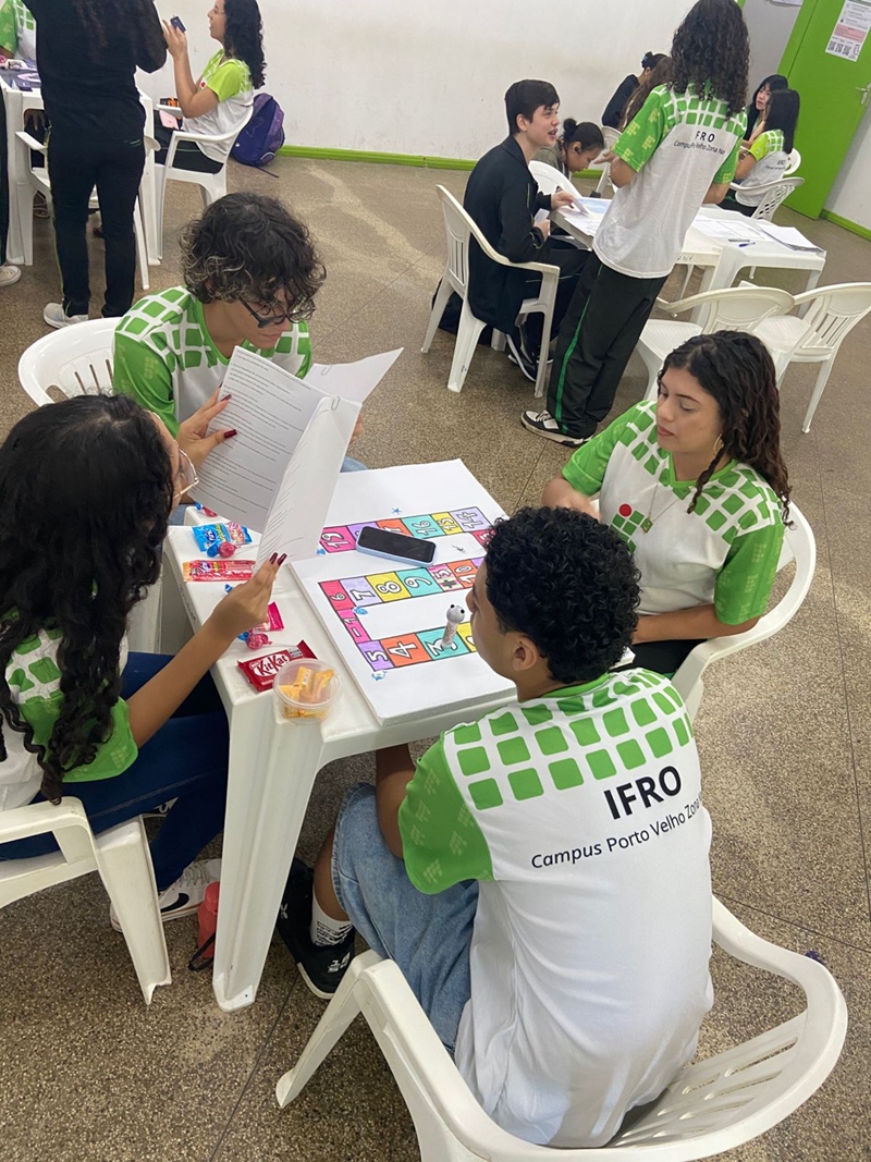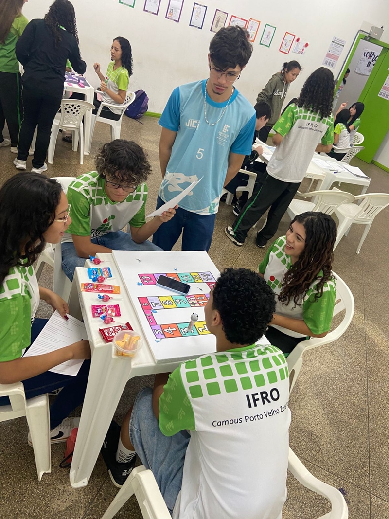 Durante o evento, os estudantes do IFRO apresentaram 11 jogos de tabuleiro desenvolvidos na disciplina de Arquitetura de Computadores, sob orientação da Professora Ivanilse Calderon. Os trabalhos foram resultado da aplicação de metodologias ativas de aprendizagem, que ao longo do ano letivo têm estimulado o protagonismo estudantil, a autonomia e a construção significativa do conhecimento.
