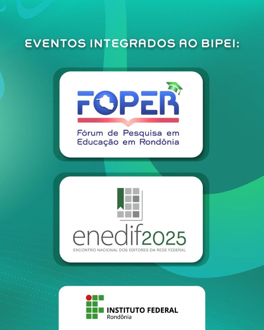 Entre os dias 11 e 13 de novembro, em Porto Velho, o Instituto Federal de Educação, Ciência e Tecnologia de Rondônia (IFRO) promove a I Bienal de Pesquisa, Ensino, Extensão e Inovação (BIPEI). O evento será realizado no Teatro Guaporé e nos campi Porto Velho Calama e Porto Velho Zona Norte.