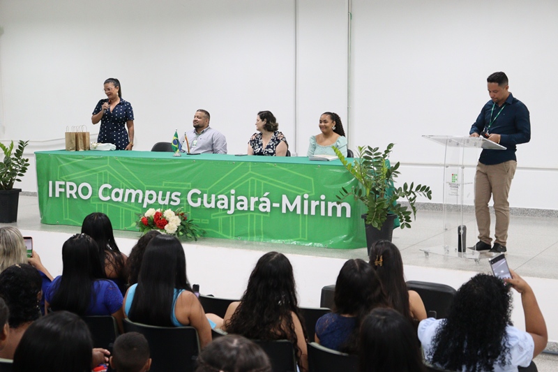 A mesa de autoridades foi composta pela Diretora-Geral do IFRO Campus Guajará-Mirim, Elaine Oliveira Costa de Carvalho; pela Supervisora do Programa Mulheres Mil e Chefe do Departamento de Extensão do campus, Luana Ferreira da Silva; pelo Professor Daniel Bezerra Lopes, representando os docentes do Curso FIC Designer de Sobrancelhas com Aplicação de Henna; e pela Professora Herica Costa Hayden, representando os docentes do Curso FIC em Manicure e Pedicure. Após a execução do Hino Nacional Brasileiro, a palavra foi concedida às autoridades para discursos de congratulação.