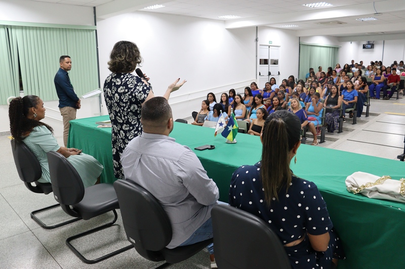 A solenidade seguiu com o momento mais aguardado: a chamada nominal e a entrega dos certificados de conclusão às alunas dos dois cursos, que celebraram a concretização de seus estudos.