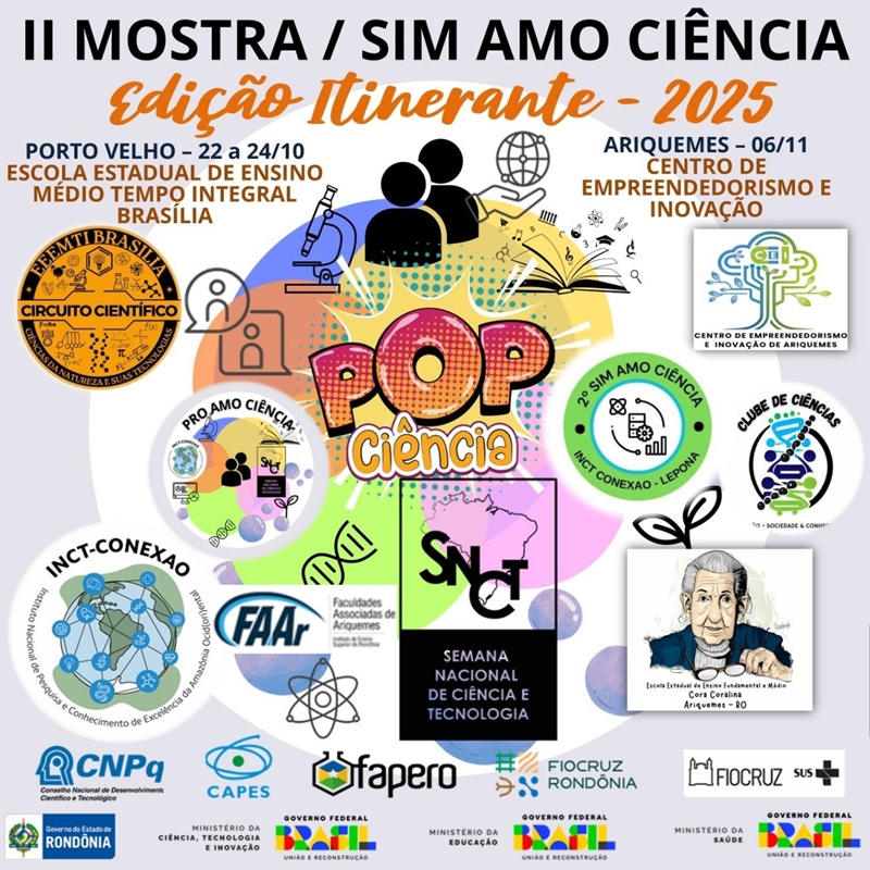 Acadêmicos da Licenciatura em Ciências Biológicas do Instituto Federal de Educação, Ciência e Tecnologia de Rondônia (IFRO) e bolsistas do Programa Institucional de Iniciação à Docência (Pibid) participaram, no dia 6 de novembro, da II Mostra “Sim Amo Ciências” – edição itinerante, realizada em Ariquemes. O evento integrou a Semana Nacional de Ciência e Tecnologia (SNCT) e ocorreu no Centro de Empreendedorismo e Inovação (CEI) do município.