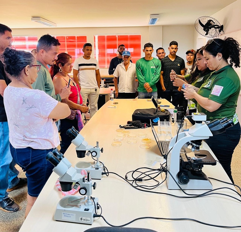 A atividade ocorreu no viveiro do campus, na área de compostagem e nos ambientes de prática do projeto, reunindo servidores efetivos, terceirizados e membros de iniciativas socioambientais vinculadas ao ICMBio. O objetivo principal foi qualificar profissionais para o manejo ambiental, com ênfase na reutilização de resíduos orgânicos e na produção de bioinsumos que possam contribuir com projetos comunitários, educação ambiental e gestão territorial.