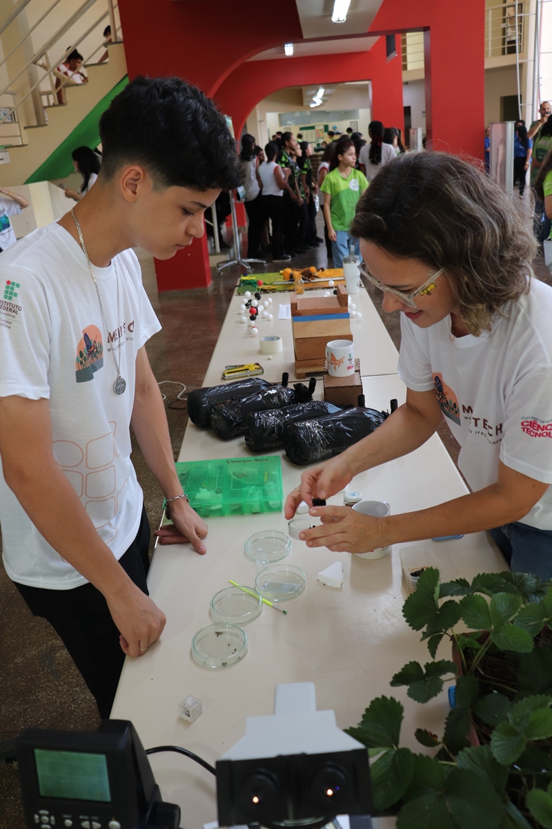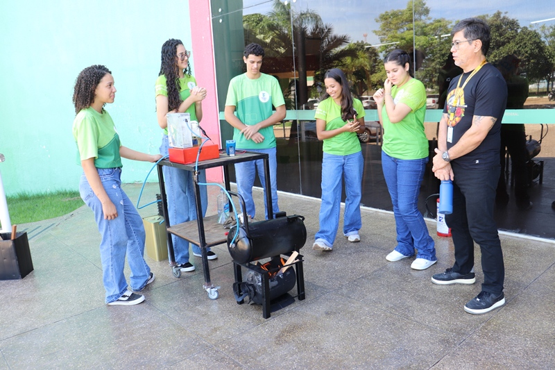 Entre os participantes, a experiência dos estudantes ajuda a ilustrar o impacto produzido pela SNCT. Alexandre Veríssimo Barroso, do 3º ano do Curso Técnico em Eletromecânica, acompanhou as atividades nos três turnos do primeiro dia e destacou como o evento ampliou sua visão sobre ciência e cidadania. Pela manhã, apresentou seu projeto da “árvore refrigerada”, momento em que pôde compartilhar com visitantes o funcionamento de uma construção que ele próprio idealizou.