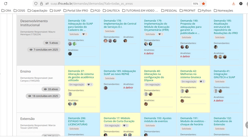 foto 100 demandas cdsisO módulo Demandas do Sistema Unificado de Administração Pública (Suap) ultrapassou 100 atendimentos pela Coordenação de Desenvolvimento de Sistemas da Diretoria de Gestão de Tecnologia da Informação do Instituto Federal de Educação, Ciência e Tecnologia de Rondônia (CDSis/DGTI/IFRO). O marco significativo de atendimento é observado desde que entrou em produção, em 2024. O módulo foi implantado em 8 de julho de 2024, em conformidade com as regulamentações definidas pela Pró-Reitoria de Desenvolvimento Institucional (Prodin/IFRO).