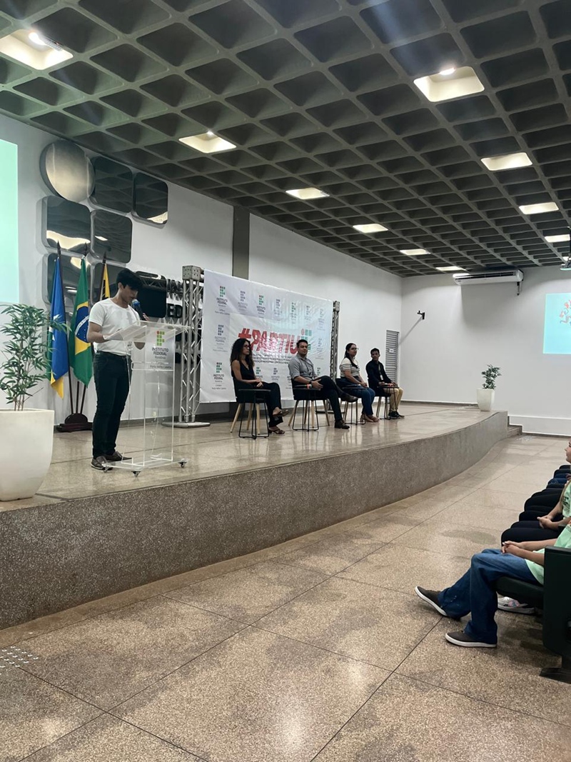 Realizado no auditório do campus, o encontro marcou a conclusão das atividades formativas voltadas a estudantes do 9º ano do ensino fundamental da rede pública, prioritariamente negros, quilombolas, indígenas, pessoas com deficiência e jovens de baixa renda, conforme diretrizes da Secretaria de Educação Continuada, Alfabetização de Jovens e Adultos, Diversidade e Inclusão (Secadi), do Ministério da Educação.
