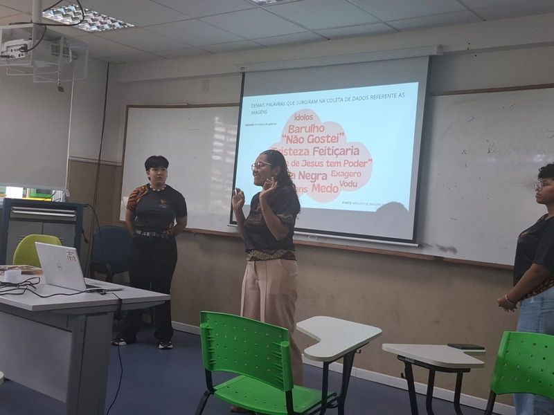 Estudantes integrantes do Núcleo de Estudos Afro-Brasileiros e Indígenas do Instituto Federal de Educação, Ciência e Tecnologia de Rondônia, Campus Ji-Paraná (Neabi/IFRO/Ji-Paraná), participaram do Seminário de Redes Antirracistas. O evento foi realizado nos dias 11 e 12 de dezembro, no Instituto Federal de Brasília (IFB), em Brasília (DF). Participaram IFs de todo país. As alunas Kerollyn Custódio Cardoso, Iziany da Silva Onório e Maria Eduarda Yamamoto Tomé apresentaram trabalhos decorrentes da pesquisa “A percepção de estudantes do IFRO Campus Ji-Paraná sobre religiões afro-brasileiras a partir de imagens”.