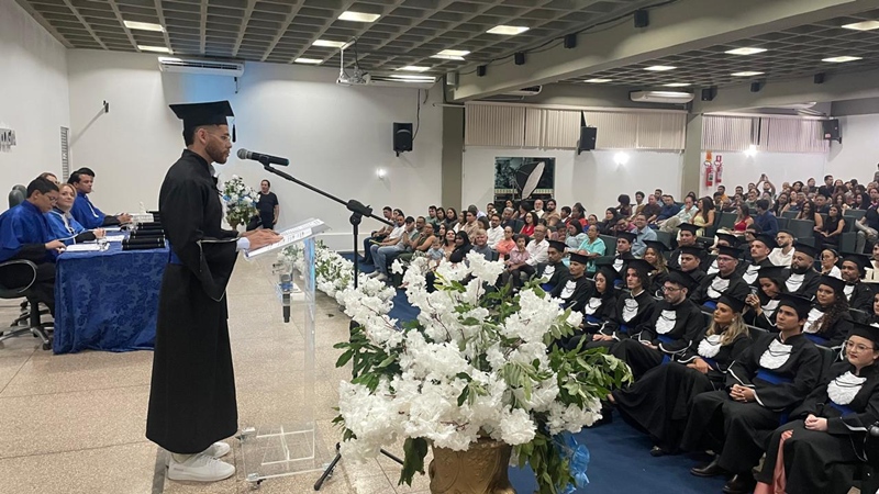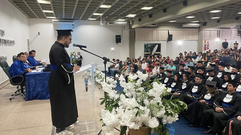Raimundo agradeceu aos docentes, familiares e amigos pelo apoio durante toda a caminhada acadêmica. Disse que o término do curso marca o início de uma nova etapa, permeada por expectativas e incertezas, e convidou os formandos a viverem esse novo momento com coragem, aprendizado contínuo e responsabilidade social. Reforçou, por fim, o compromisso de atuar como profissionais capazes de unir técnica e ética, contribuindo para a sociedade e deixando legados que vão além das obras materiais.