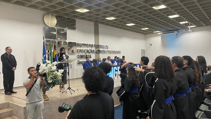 A Reitora Substituta Xênia de Castro conferiu a outorga de grau aos representantes dos cursos. Victória Régia Souza Ribeiro representou os formandos de Engenharia Civil e Ana Francisca Marques Penha representou os formandos em Engenharia de Controle e Automação.