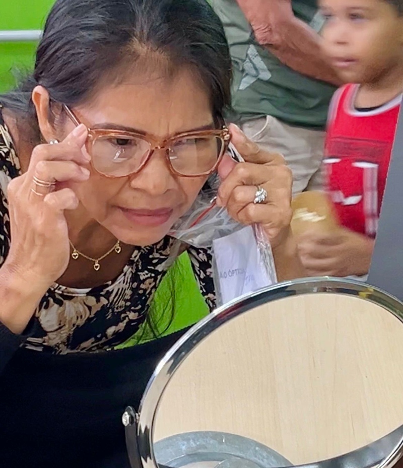 Entre os beneficiários atendidos está Soila Valéria, moradora de Porto Velho, que destacou a importância da iniciativa. Segundo ela, a entrega dos óculos representou uma mudança significativa em sua qualidade de vida. “Sou do bairro Três Marias. Gratidão pelos óculos que eu recebi. Eu estou muito feliz. Eu fiz a cirurgia de catarata e continuei não enxergando bem, e agora chegou essa opção. Fiquei esperando os meus óculos por um mês e agora estou feliz. É muito importante porque muitas pessoas estão na fila do SUS, esperam por uma consulta no oftalmo e nunca chega, demora muito. E aí aqui foi bem rápido. Eu pretendo participar de outras ações como essa”, relatou.