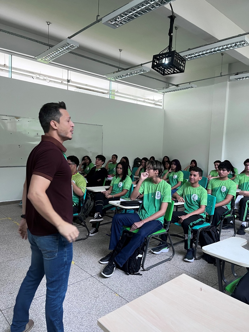 Representantes do Grêmio Estudantil e líderes de turma explicaram o funcionamento da organização, que atua em parceria com a gestão no encaminhamento das demandas dos estudantes. O Grêmio participa de atividades como visitas guiadas aos espaços do campus, incluindo salas de aula, biblioteca, laboratórios, refeitório e quadra poliesportiva.