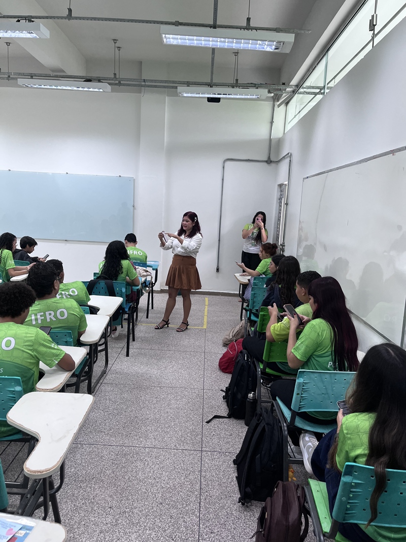 Representando o Departamento de Extensão (Depex), a Professora Yasmmin Rodrigues do Vale apresentou as ações que fortalecem a relação entre o IFRO e a comunidade externa, incluindo eventos institucionais, cursos de idiomas, projetos sociais e culturais, além da Coordenação de Estágios, que orienta os estudantes para a inserção no mundo do trabalho. Foi destacado que o estágio obrigatório ocorre a partir do segundo ano, com possibilidade de estágios não obrigatórios desde o início do curso.