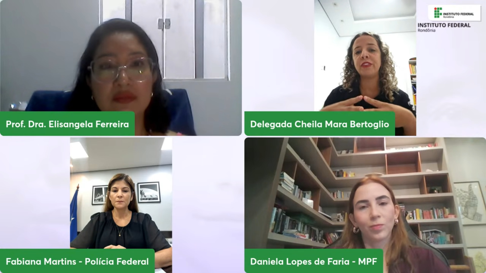 O debate foi mediado pela Professora Elisangela Ferreira, e teve a participação da Superintendente-Chefe do Ministério Público Federal em RO, Daniela Lopes de Farias; da Superintendente Regional da Controladoria-Geral da União em RO, Sônia Silva; da Delegada responsável pela Delegacia Especializada de Proteção à Criança e ao Adolescente em Porto Velho-RO, Cheila Mara Bertoglio; e da Superintendente Regional da Polícia Federal, Fabiana Martins Machado.